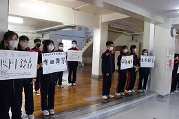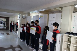 三中をより良い学校にするために、役員候補の生徒が呼びかけているところです。